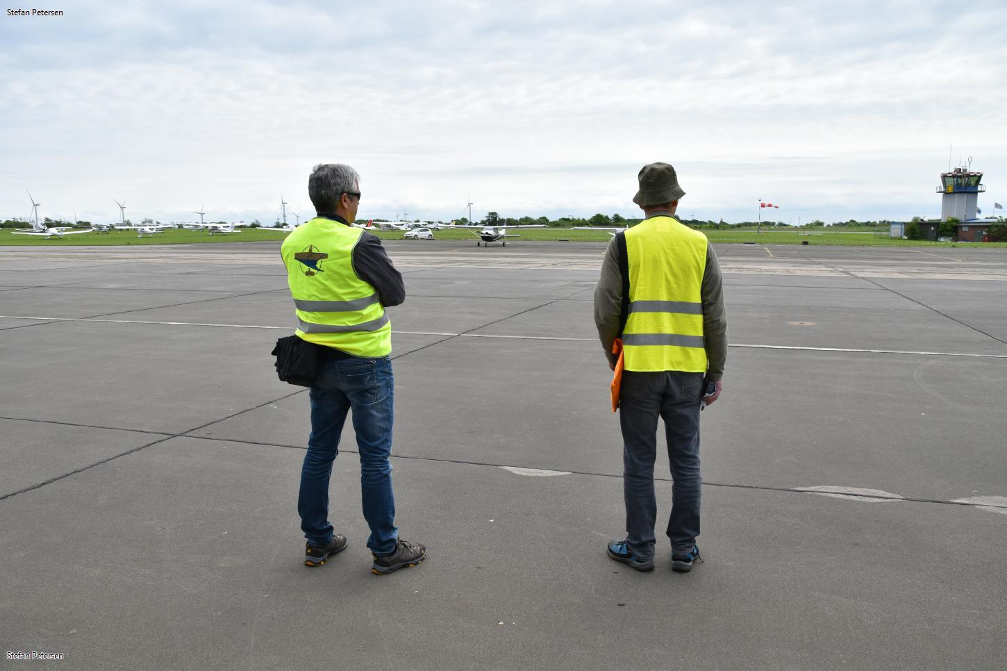 Gut ausgeruht treffen sich alle am Sonnabendmorgen um 10 Uhr zum Briefing, der Unterweisung aller Teams in einem der Flugzeug-Hallen auf dem Flugplatz. Dazu gehört in diesem Jahr auch die erneute Belehrung aller über das mit den Behörden vereinbarte Hygienekonzept.